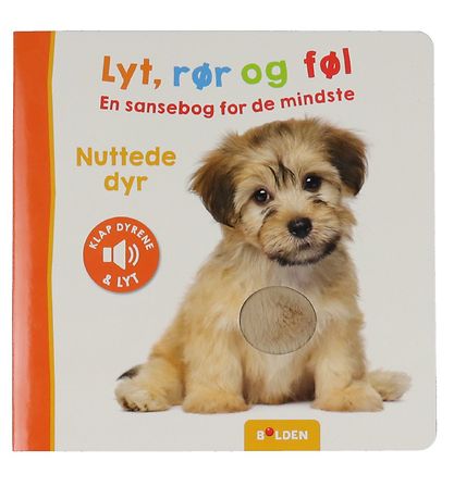 Forlaget Bolden the reference book consists of images of cute animal with tube and felt effect of the animals' fur. If you press pipe and feel the effect, the animal's sound is played. For each animal, there is a description of which animal it is, characteristics and its sounds. This book is perfect for stimulating the kid's senses, as they can both see, touch and hear the sound of the animal.