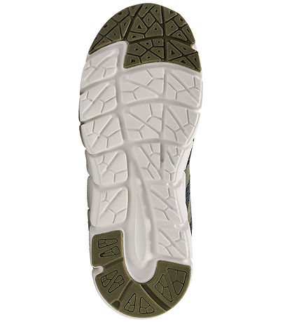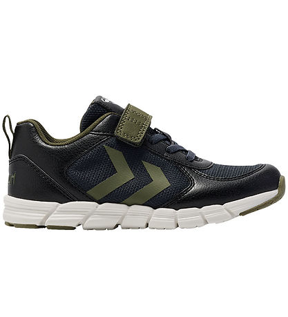 The Hummel shoes have elastic laces over the instep and are closed at the top with a practical Velcro strap. There is a practical strap at the back, which makes it easier to put the shoes on. The inside is dark green textile and removable insoles. The shoes have white outsoles in lightweight and flexible material with a practical tread pattern under the bottom.