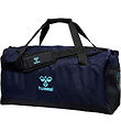 Lovely Hummel sports bag in navy with the name "hummel" written on one side and on the bottom in silver. On the other side, there are the familiar chevrons.