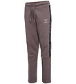 The Hummel trousers come with a wide elastic waistband and a white and navy striped ribbed cuff around the ankles.