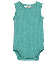Sweet Joha bodysuit in plain dusty green with a fine ribbed structure.