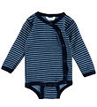 The Bodysuit has long sleeves and has a turn-around function so that it can be buttoned all the way up with push buttons. This function makes it super easy to get the bodysuit on and off the kid without having to pull it over the head. Between the legs, the bodysuit can also be opens using push buttons, which makes it easy to get to the nappy. The Bodysuit is edged with rib all around for increased comfort.