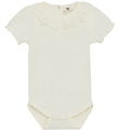 The Jordan bodysuit has short sleeves and a round neckline. The Bodysuit has practical folding shoulders and opens between the legs with smart push buttons. The socks have a nice bow at the top, and the headband is in a stretchable quality.