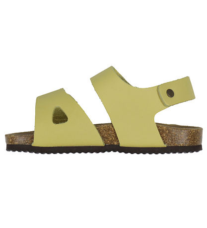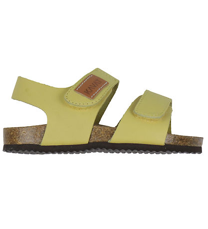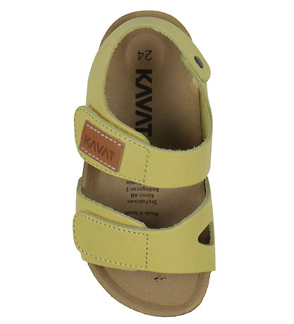 Beautiful Kavat sandals in yellow leather with a brown leather logo on the top strap.