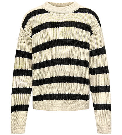 Lovely Kids Only blouse in white with horizontal stripes in black. The Blouse has a lovely, ribbed structure with a round neckline and long sleeves.