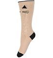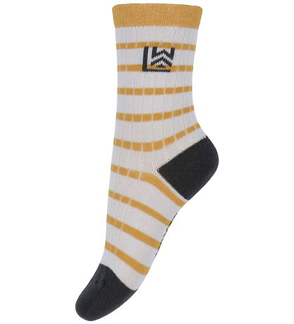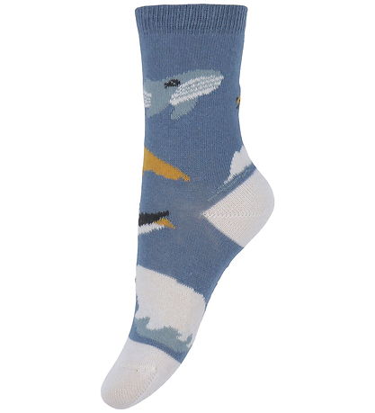 Charming Liewood socks in a 3-Pack consisting of different designs. One pair is beige with golden stripes and a black toe, heel and logo. The second pair has a stylish whale motif in grey blue shades. The last pair is blue with a pattern of swimming whales. The Socks have elastic at the top for a good fit.