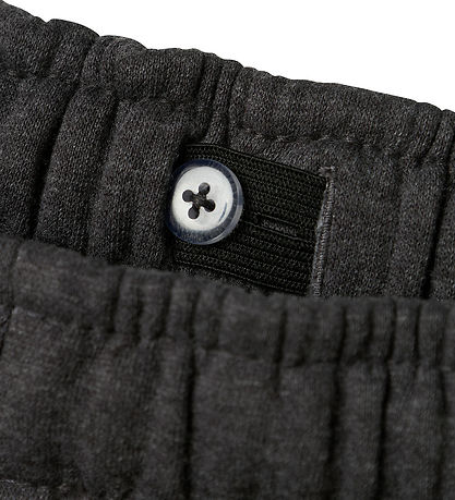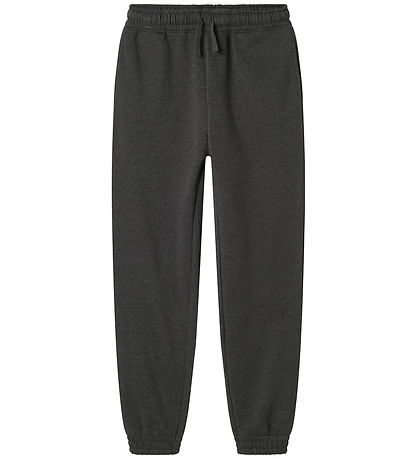 Soft LMTD sweatpants in melange dark grey. The sweatpants have an elastic waistband that can be adjusted with buttons inside. There is a decorative lace at the front and practical pockets on the sides. The sweatpants have elastic in the leg openings. The inside is made of soft, brushed cotton.