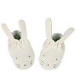 Beautiful Meri Meri booties in a knitted quality in beige with an embroidered rabbit face and sewn-on ears in mint green.