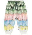 Lovely Molo Sweatpants in a colourful design with a floral print in shades of green, pink, blue and yellow. The sweatpants have an elastic waist and ribbed edges at the ankles, which provides a good fit.