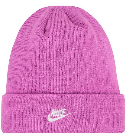 Smart Nike beanie and gloves in pink knitted with a white logo embroidered on the front of the beanie and on the top of the gloves.