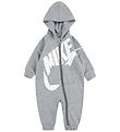 Beautiful jumpsuit from Nike in white with an all-over floral print in pink, grey and beige shades. On the left chest there is a pink logo print.