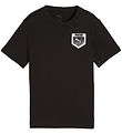 Nice Puma t-shirt with short sleeves in black with a large, white logo printed on the front, giving a stylish look.