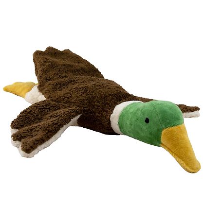 Beautiful Senger Naturwelt heating pad shaped like a duck in brown and white and with a green head.