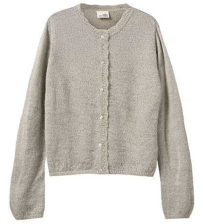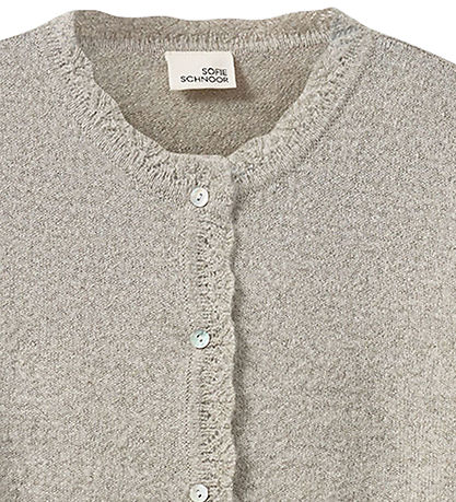 Elegant Sofie Schnoor Cardigan in a light grey-beige colour with button closure and fine details. The Cardigan has long sleeves, making it suitable for cooler days.
