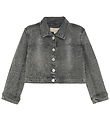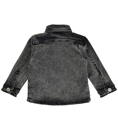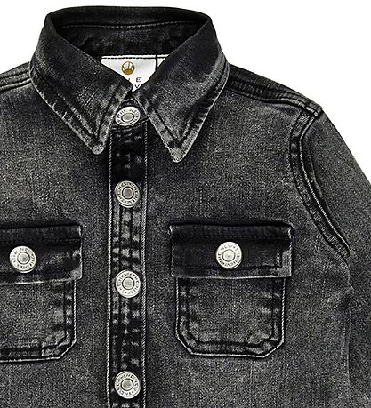 The New denim jacket has a nice collar in the neck opening and has long sleeves with button closure around the wrists. The denim jacket closes at the front with continuous push buttons. The Jacket has two chest pockets.