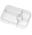 The Yumbox insert tray has five compartments, consisting of one large compartment, one oblong compartment, two smaller compartments and one small, round compartment for dipping or snacks.