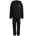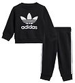 The adidas Originals sweatshirt has long sleeves and a round neckline with ribbed edges at all openings, as well as push buttons at the neck. The Leggings have an elastic edge at the waist and wide the leg openings.