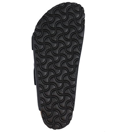 Stylish Birkenstock sandals in black leather. The lower part of the outsole is black.