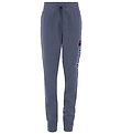 Cool Champion Fashion sweatpants in light blue, with "Champion" embroidered on the left side of the front in navy, white and red. At the back there is also a logo embroidered in the same colours.