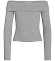 The Grunt blouse is a card, cropped model. It has long sleeves and a wide neckline with a wide pleat that can be pulled over the shoulders.