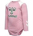 The Hummel bodysuit has long sleeves and a round neckline. It has narrow ribbed edges in all openings, and it opens with push buttons on the left shoulder and between the legs. The Bodysuit is made of a soft and stretchy cotton quality.
