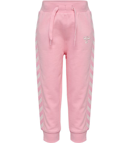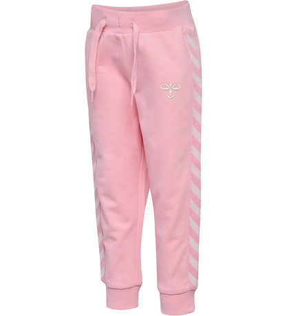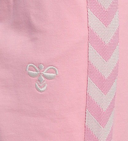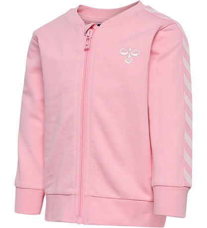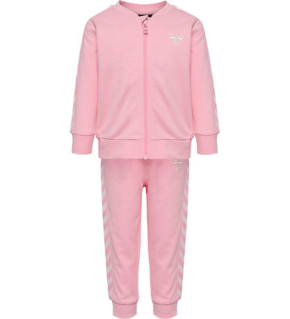 Fine Hummel sweat set in a light rose colour consisting of a cardigan and a pair of sweatpants. The Cardigan has Hummel- shevrons in white and pink along the sleeves and a little logo embroidered in white on the left chest, and the sweatpants have Hummel- shevrons in white and pink along the outside of the trouser legs and a little logo embroidered in white on the top of the left leg, which gives a sporty look.