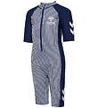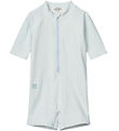 The Hust and Claire swimsuit has short sleeves and short legs. The bathing suit opens at the front with a practical, continuous zipper with chin guard and internal wind pole. The swimsuit is made in a smooth and stretchy quality.