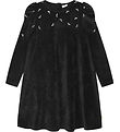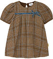 The Hust and Claire dress has a seam at the waist in velor which forms a fine skirt with width and pleats. The Dress has elastic edges in the arm openings and a simple button at the neck. The Dress is made in a tightly woven cotton quality.