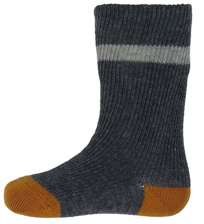Beautiful Liewood knee high socks sold in a 2-pack in dark grey melange with details in orange and light grey.
