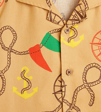 Fine Mini Rodini shirt in beige with an allover print with a sailor theme in shades of brown, red, yellow and green.