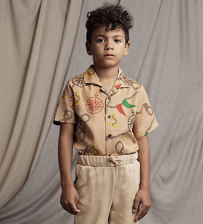 The Mini Rodini shirt has a classic, turned collar in the neck and short sleeves. The Shirt opens at the front with continuous buttons. The Shirt is in a nice tightly woven quality.