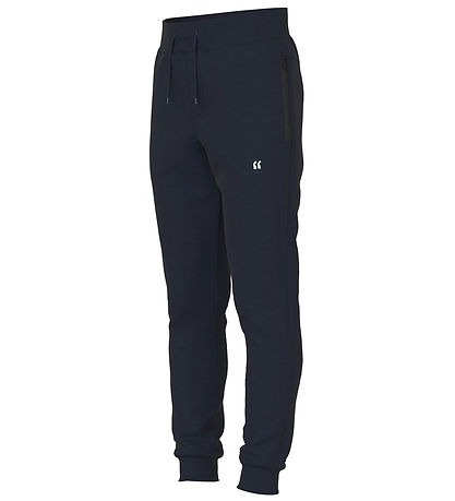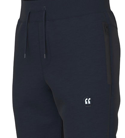 The Name It sweatpants have a wide ribbed edge with an internal, adjustable elastic edge and decorative drawstring at the waist, which ensure a good fit. The sweatpants have wide ribbed edges in the leg openings and at the front they have a practical pocket with a black zipper on each side. The sweatpants have an embroidered logo on the left thigh and a nice open back pocket on the back of the right leg. The sweatpants have a soft, brushed inside.