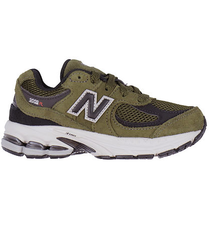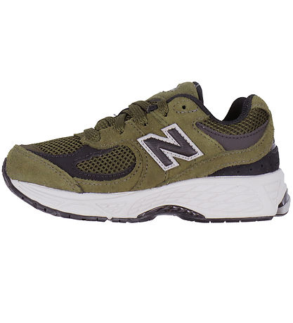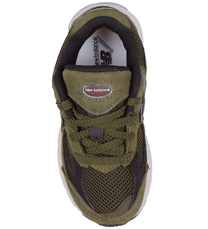 Great New Balance shoes in dark green suede and textile with black details and logos on the sides in black and silver.