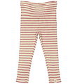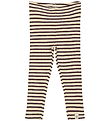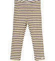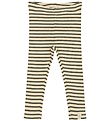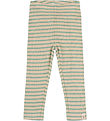 Stylish Petit Piao leggings with a classic, horizontal stripe pattern in green and beige. The Petit Piao leggings have an elastic waist that ensures a good fit, and they have a nice ribbed structure.