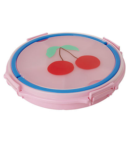 Fine Rice snack dish in pink with a colorful cherry print on the lid.