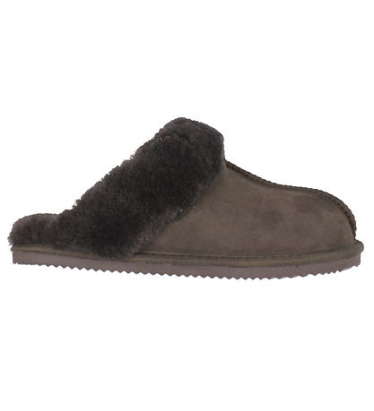 Beautiful Rosemunde slippers in dark brown suede with a wide edge with dark brown fur in the foot opening.