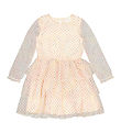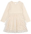 The New dress has long sleeves, and in the neckline, there is a narrow ribbed edge. At the waist, there is a narrow elastic, which gives a beautiful fit. The dress has a pocket on each side and is made in a soft and stretchy quality.