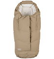 The wax bag is lined with soft cotton, and it is quilted with warm down and feathers, while there is wool in the back. Around the bottom of the footmuff there are practical reflectors. A flat, lightly quilted cushion is included, which can be easily washed if it gets dirty.