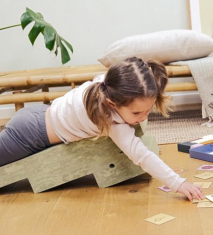 The crocodile challenges the senses of small and large kids. Here, the little child can practice walking up stairs, jumping from different heights from the crocodile's sloping back or trying to keep balance when the crocodile is turned upside down.