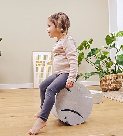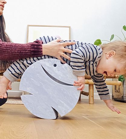 The fish is round with flat ends. It is a beautiful and smart piece of furniture that can be used in many different ways. The toddler can roll the fish off and then try to catch it. Let it roll over on your stomach and strengthen your back and neck. The fish and is also used as a raiser for chairs at the dining table, and if you have several and in different sizes you can build a tower.
