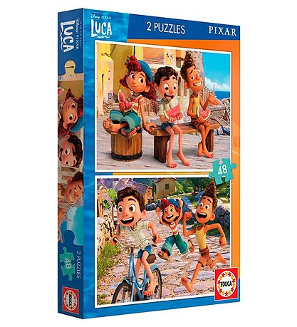 Cute Educa puzzle game which consists of 2 images from the Disney movie Luca with the three friends Luca, Alberto and Giulia.