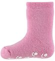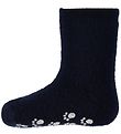 The Joha wool socks are solid navy with a non-slip bottom, made with small white paws.