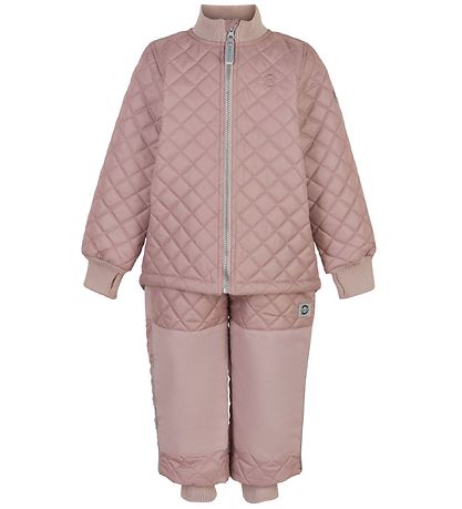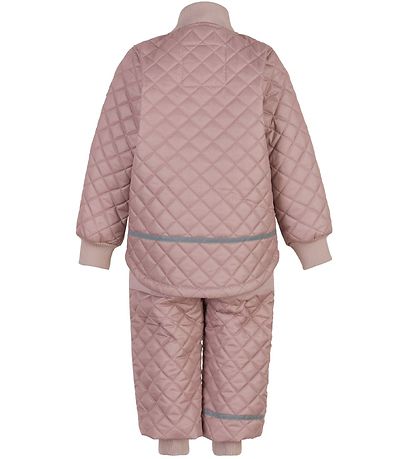 Cute Mikk-Line thermo set consisting of a thermo jacket and a pair of thermo trousers in pink with a quilted structure.