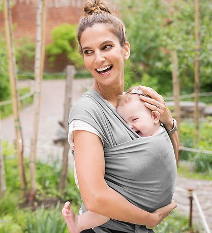 The Moby stretch wrap is the perfect carrying tool for the new baby, because you can easily achieve the close proximity that gives both you and baby more security and a closer attachment. The stretch wrap can be worn both on the front and on the hip. The wrap is put on like a t-shirt, and adjusted and closed at the front with ties. The very little child is recommended to sit facing inwards, but when the kid is 6 months+, he can also face outwards in the wrap.