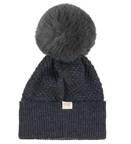 Cute MP beanie in plain dark grey in knitted with a nice dotted structure. At the front there is a fabric mark with "MP" in brown.