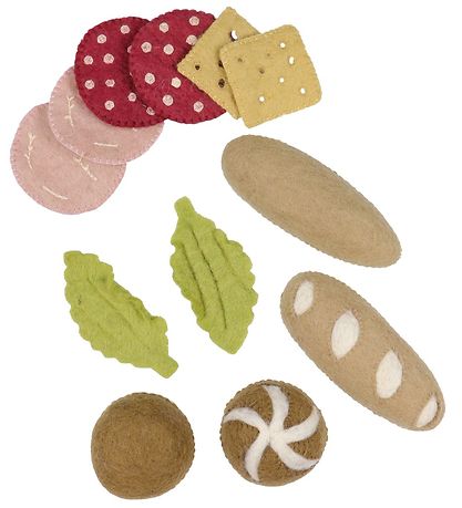 Papoose Play Food - 12 Parts - Wool - Baguette and Bun w. Cold C