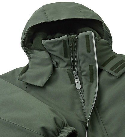 Cool Reima snowsuit in plain, dark, dusty green.