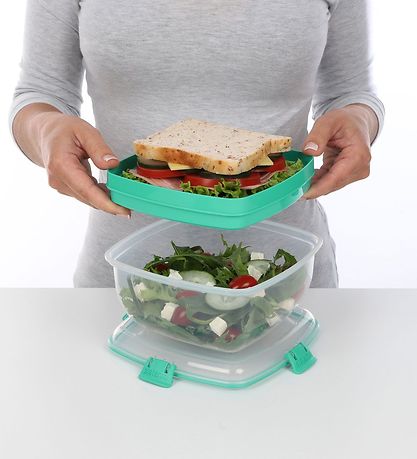 The Sistema lunchbox is practically designed with one large compartment and a tray at the top, so that the lunchbox is divided into levels. That way, there can be a salad at the bottom and a sandwich at the top, without the two coming into contact with each other. At the top, of course, there is a lid, which closes with special clips on all sides.
