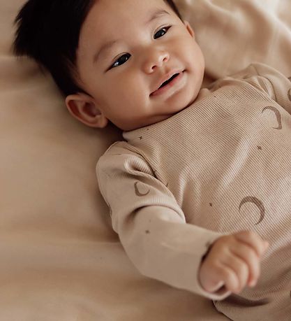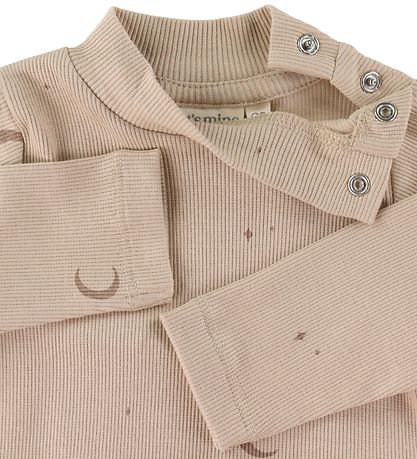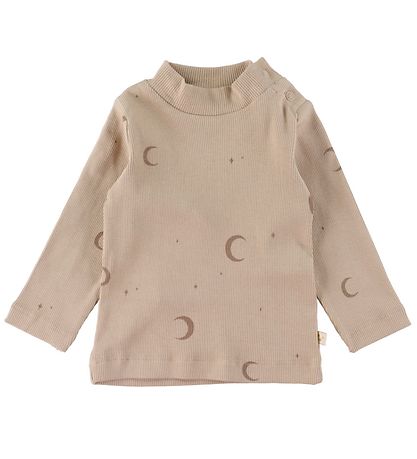 Beautiful ThatThats Mine blouse in a light brown rib quality with an allover print of moons and stars.