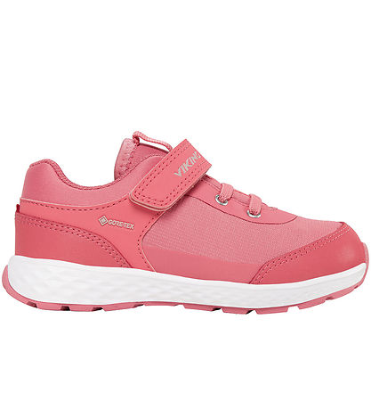 The Viking shoes have elastic laces over the feet, and they are tightened with velcro. The shoes have removable insoles. The midsoles are white and made of a lightweight material, and on the underside they are pink along the edge and made of rubber, which provides a good foothold.